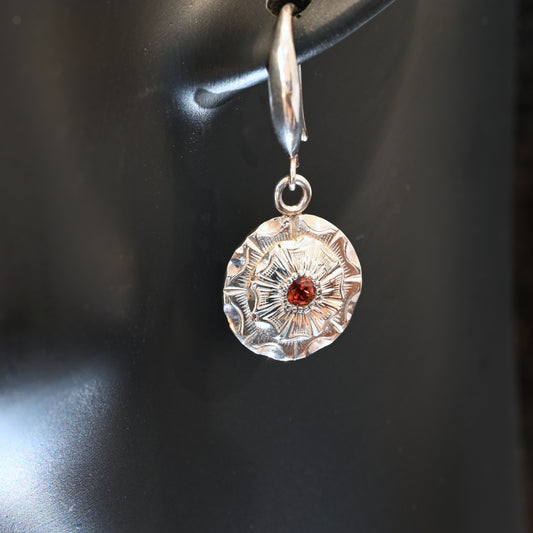 Vintage Flower & Garnet Drop Earrings