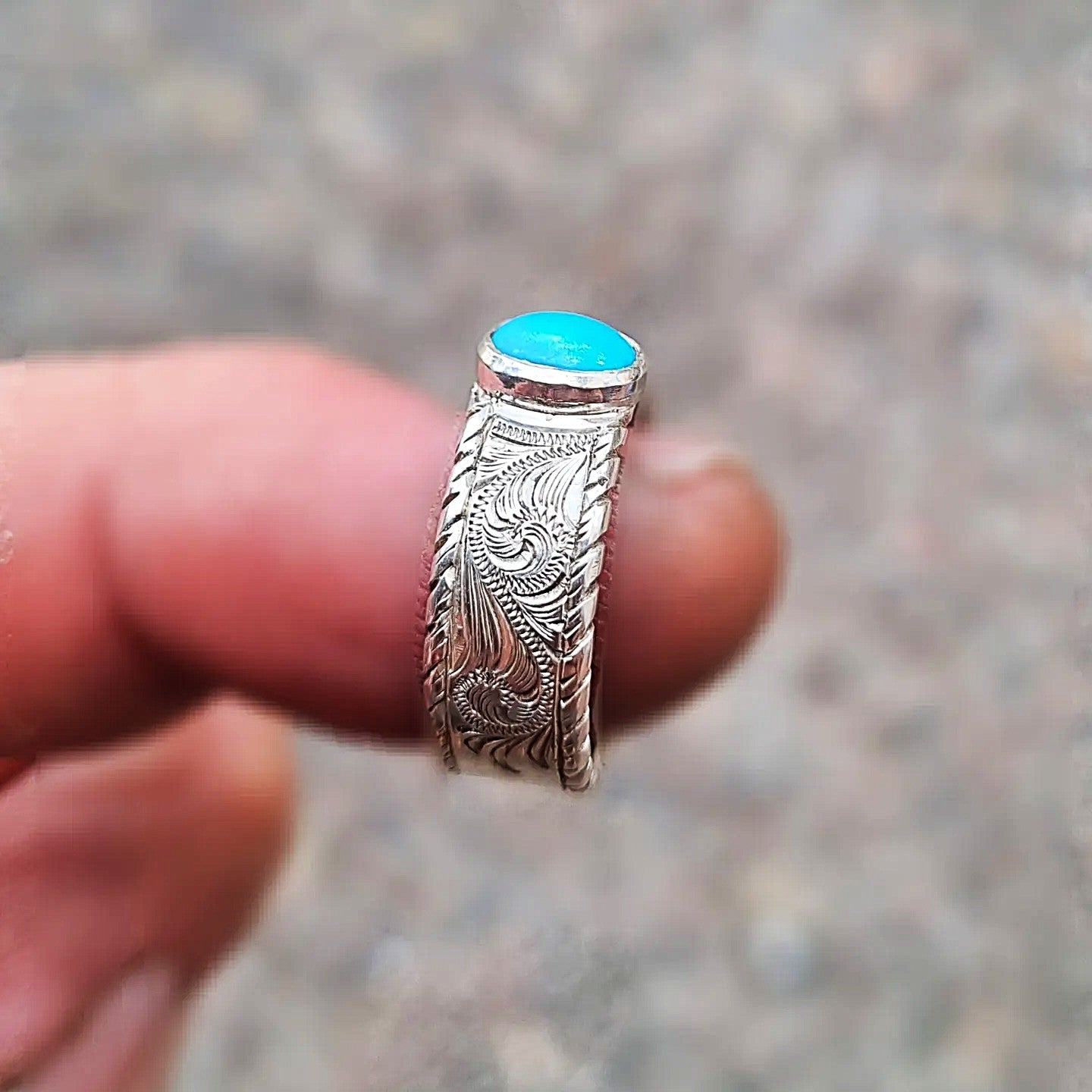 This gorgeous ring was a gift for a young lady who is right on trend out West. Turquoise paired with western-style hand-engraving was the perfect way to showcase her style.