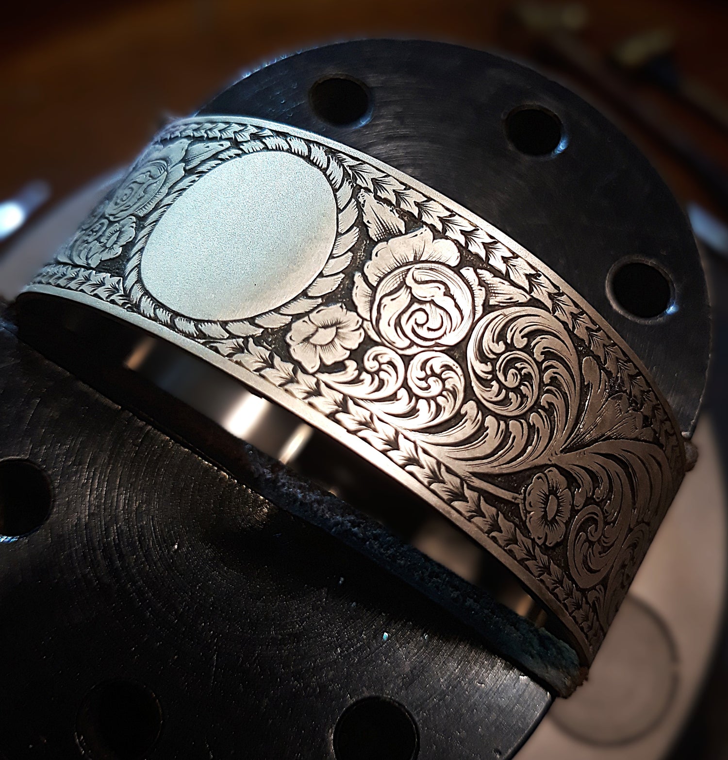 Hand-engraved with hammer and chisel, this beautiful bracelet was crafted as requested - to be a unique talking piece that would stand out from the crowd. This one really hit the mark.