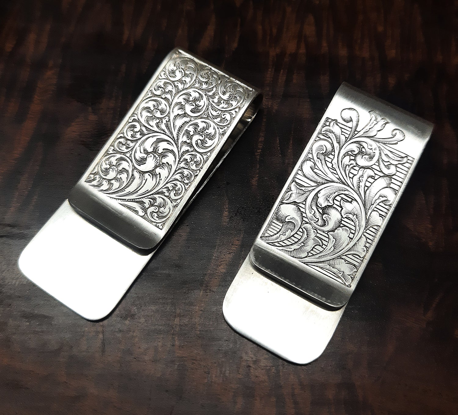 It's not often that we are asked for items as old-world as money clips, but we took this opportunity and ran with it. The sophisticated gentleman who ordered these knew how to make a statement.