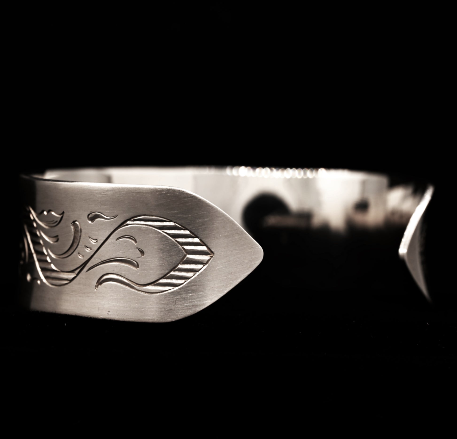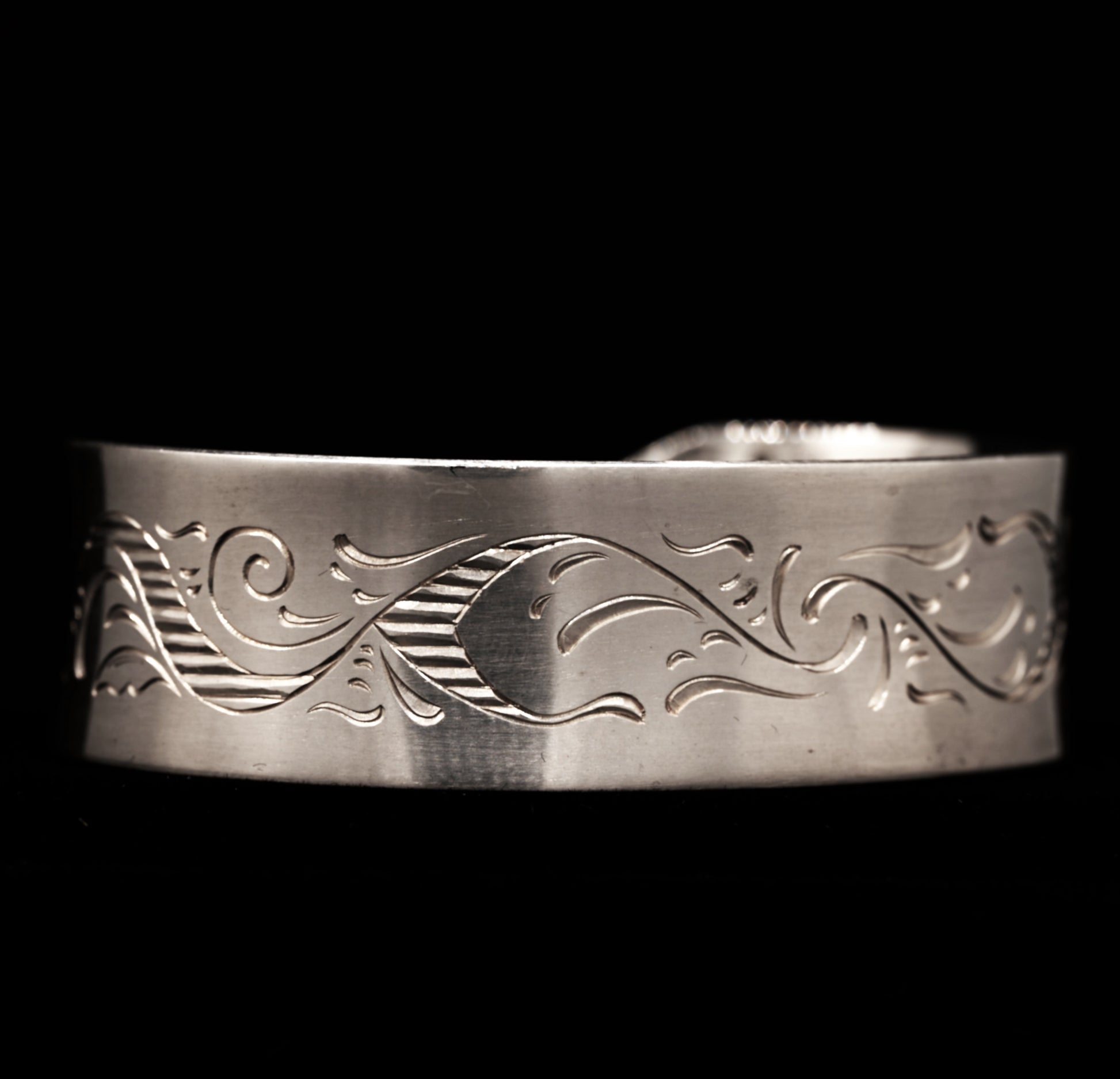 This hand-crafted and engraved, sterling silver cuff bracelet is the perfect combination of old-world charm and modern elegance.