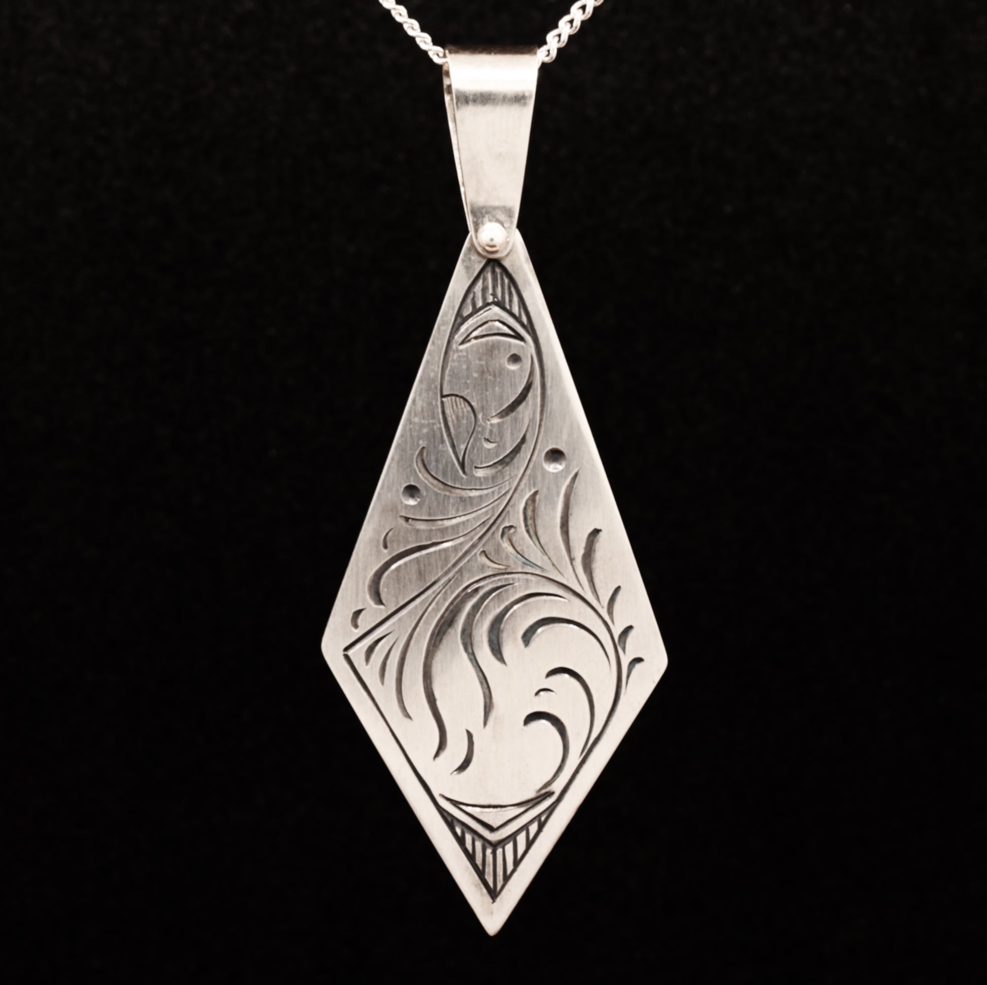 Turn heads with this hand-crafted and engraved sterling silver statement pendant.